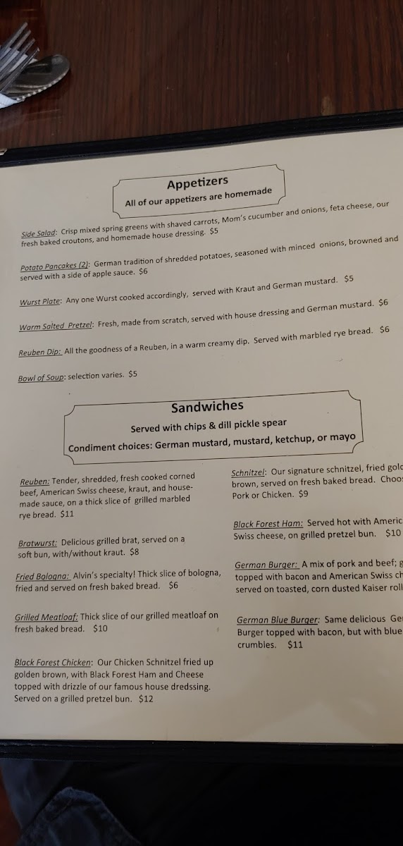 Served with side of house dressing and German mustard.