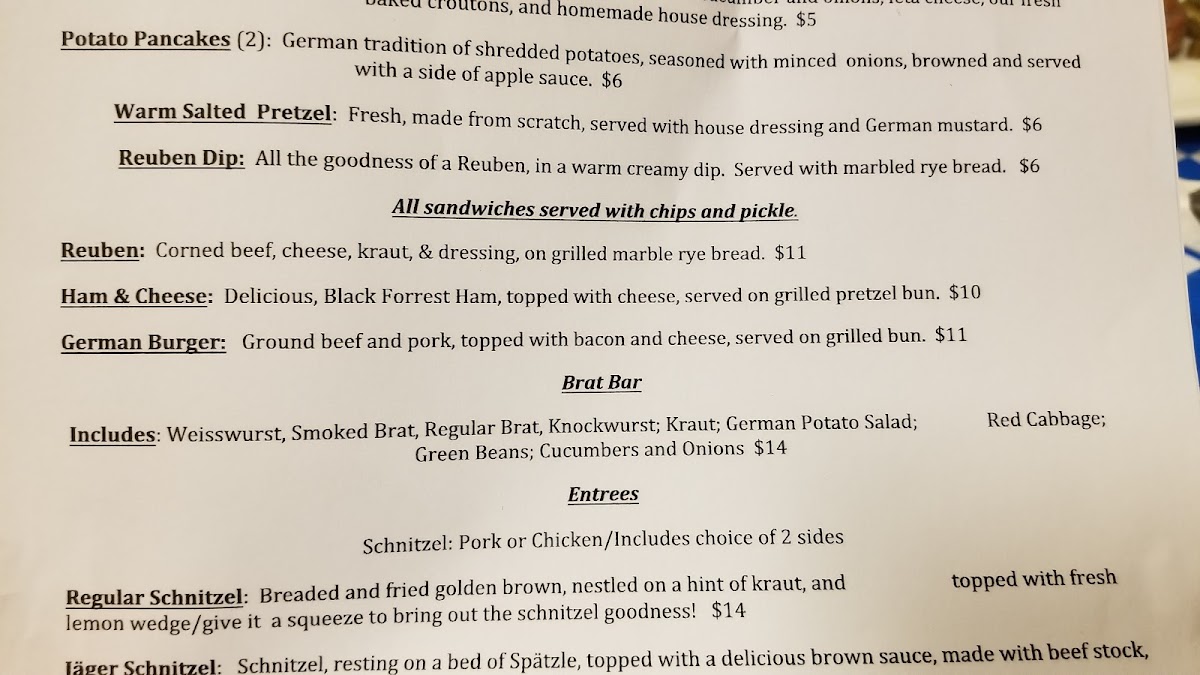 Breaded and fried golden brown, nestled on a hint of kraut, and topped with fresh lemon wedge/give it a squeeze to bring out the schnitzel goodness!